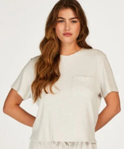 Dieses Pyjama-Oberteil mit kurzen Ärmeln sitzt einfach wunderbar! Es ist aus Rippstoff gefertigt und ist angenehm elastisch. Kombiniere es mit anderen passenden Teilen.